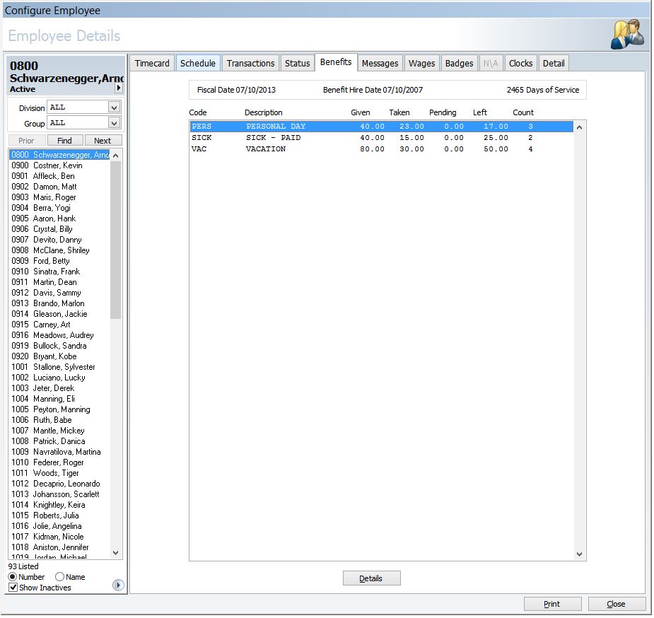 Human Resource Functions: Tracks attendance, tardiness, benefit entitlements (for example PTO, sick, vacation, and personal days), department and job transfers, schedules, wage calculation, and automated holiday pay.