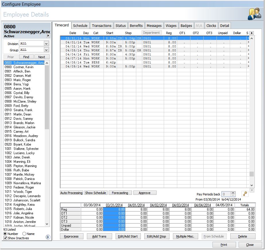 Security: Each software administrator will have their own unique ID and password. This is allows for an Audit Trail to track any changes made. Security levels can also be created to allow users to access only certain employees and to only perform certain functions within the software.